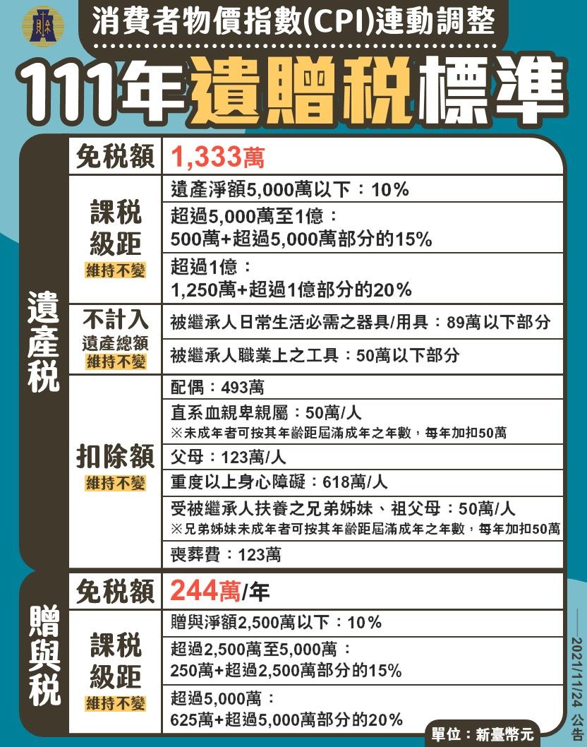消息總覽 法令專區 研習資訊 相關連結 111年遺贈稅標準 2022/2/9 法令專區 不動產過戶、土地房屋繼承、贈與、貸款、法稅務、信託、節稅規劃,關於房屋土地的任何問題,安信(代書)地政士是您的最佳選擇。 雲林、嘉義、台南、高雄、屏東地區 回列表一覽